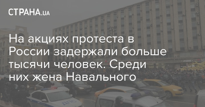 В России на акциях протеста в поддержку оппозиционного политика Алексея Навального, которые проходят в субботу, 23 января, по состоянию на 15:02 по Киеву задержали уже 1090 человек.
