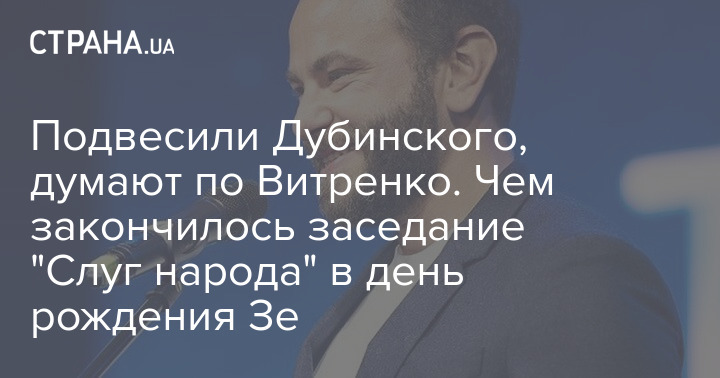 1. Вопрос по Дубинскому подвис. Зеленский предложил ему выйти из фракции на время расследования, а Дубинский отказался. Теперь фракция хочет снова вернуться к этому вопросу, рассмотрев три варианта: а) поддержать Дубинского, б) исключить его из фракции и в) лишить регалий (убрать с должности зама главы комитета по финансам).