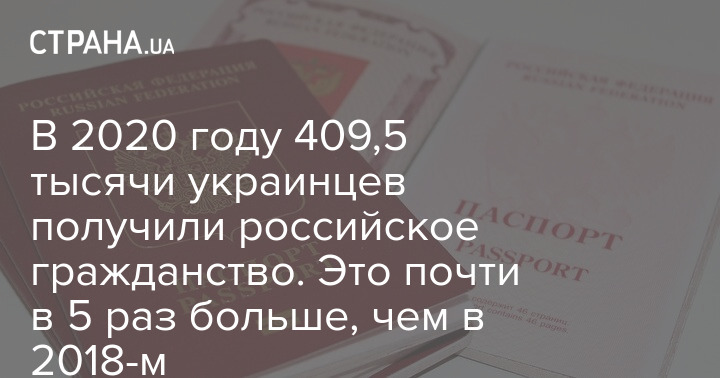 В 2020 году 409 549 украинцев получили российское гражданство. Это на 110 127 человек большое, чем годом ранее, и почти в пять раз больше, чем два года назад.