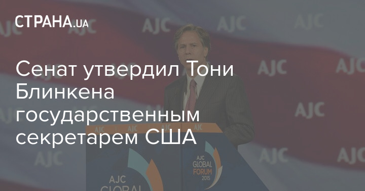 Сенат США утвердил предложенную новым президентом Джо Байденом кандидатуру Тони Блинкена на должность главы Государственного департамента.