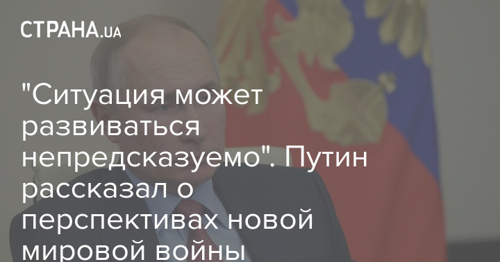 "Неготовность разрешать мировые проблемы в ХХ веке обернулись катастрофой Второй мировой войны. Сейчас такой горячий конфликт невозможен, очень на это надеюсь. Это означало бы конец цивилизации. Но ситуация может развиваться непредсказуемо и неуправляемо. Есть вероятность столкнуться с настоящим срывом в мировом развитии, чреватым борьбой всех против всех", - сказал Путин.
