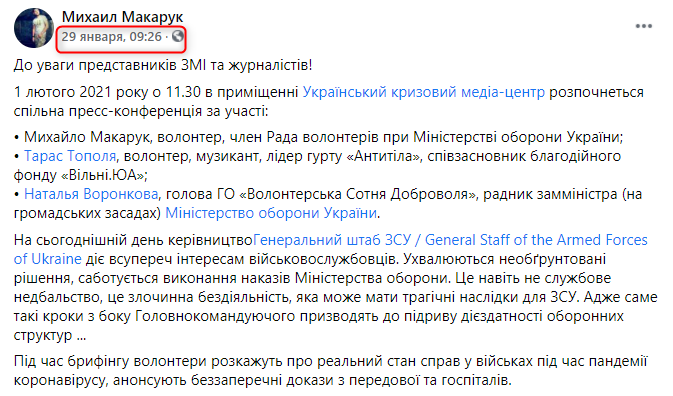 Вскоре начались "сетевые войны" с обвинениями в адрес командования ВСУ. А в понедельник, 1 февраля, пресс-конференцию провели отдельные волонтеры, связанные с Минобороны.