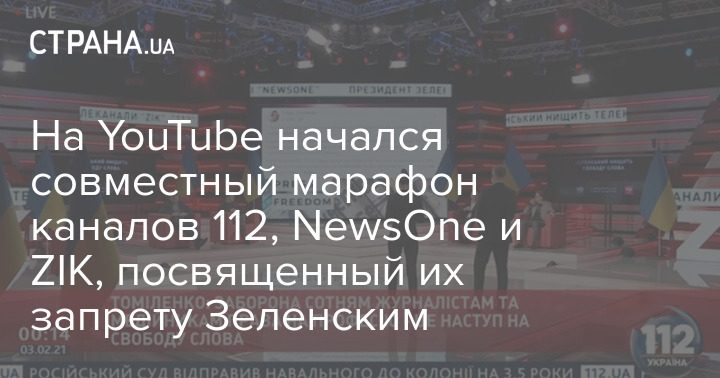 На видеохостинге YouTube стартовал совместный экстренный марафон трех телеканалов "112 Украина", NewsOne и ZIK, посвященный их блокировке и введению санкций против владельца СМИ Тараса Козака.