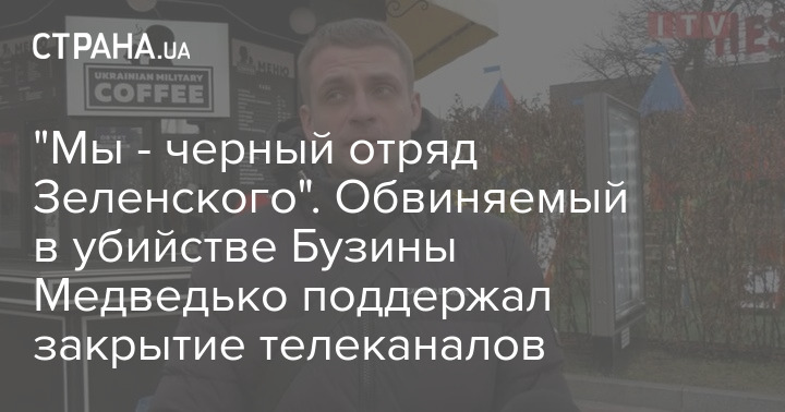 После отключения от эфира трех ведущих украинских информационных телеканалов ZIK, NewsOne и 112 обвиняемый в убийстве писателя и журналиста Олеся Бузины националист и член ультраправой организации "С14" Андрей Медведько, который недавно открыл кофейню в Ирпене, опубликовал в соцсети благодарственный текст президенту Украины Владимиру Зеленскому на немецком языке.