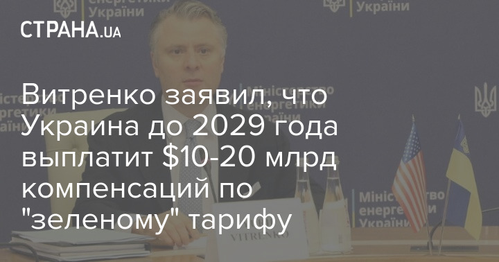 Исполняющий обязанности министра энергетики Юрий Витренко заявил, что завышенный по сравнению с рыночным тариф на энергию из возобновляемых источников (ВИЭ) ведет к значительным и проблемным для Украины выплатам инвесторам, которые оцениваются в $10-20 млрд до 2029.