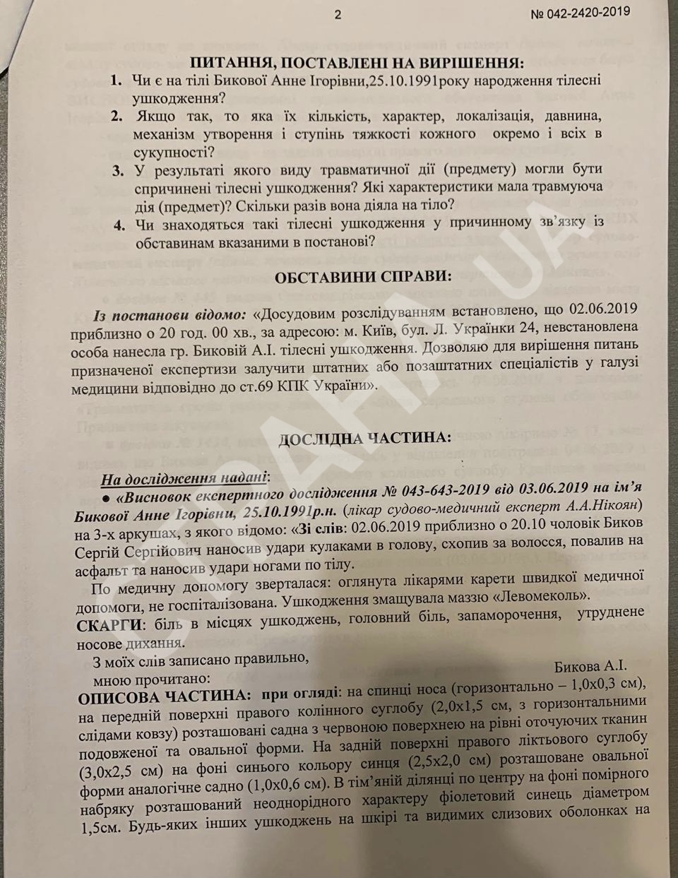 "Кстати, Сергей никогда этот факт не опровергал. Так длится по сей день. Ни одной копейки дополнительных расходов, ни одного подарка, фрукта он сыну не предоставил. При том что с октября 2018 года до июня 2019 года, когда произошло избиение, Сергей примерно два раза в месяц виделся с ребенком и забирал его на 1-2 дня. Со дня избиения Сергей пропал из жизни ребенка и уже никогда не звонил, не приезжал. Ребенка содержу я и мой нынешний супруг, также мои родители. Сейчас я отсудила у Сергея уже не 850 грн, а 1000 грн алиментов. Так как имущество на него никакое не записано, это максимум, который мне может обеспечить суд. Кстати, на суде по алиментам Сергей насмехательски сказал, что не виноват в том, что у нас такое несовершенное законодательство", - уточнила Анне Быкова.
