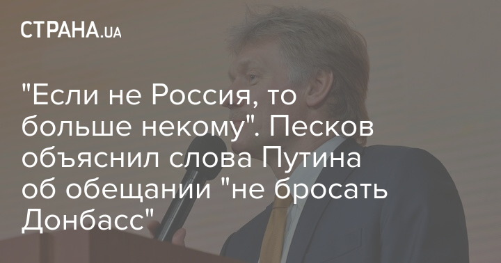 Комментируя слова президента РФ, Песков заявил: "Дело в том, что там, вы знаете, живет много русских, много русскоязычных". По его мнению, речь о людях, которые, "лишены социального обеспечения со стороны своего государства, Украины", "которым отказано в любых государственных услугах".