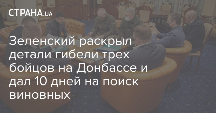 Глава державы после встречи раскрыл подробности гибели трех бойцов в зоне ООС и дал 10 дней на поиск виновных в этой трагедии. Об этом Зеленский написал в соцсети.