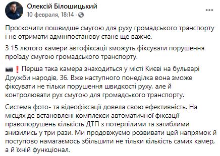 С 15 февраля в Киеве заработала первая камера автофиксации нарушений ПДД, которая считывает проезд автомобилей по полосе общественного транспорта. За нарушителями наблюдали с декабря, а на этой неделе начали выписывать штрафы.