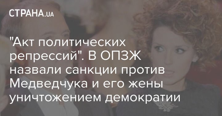 В партии "Оппозиционная платформа - за жизнь" отреагировали на введение СНБО санкций против лидера этой политсилы Виктора Медведчука и его супруги Оксаны Марченко. В партии это расценили как новый шаг власти к диктатуре.