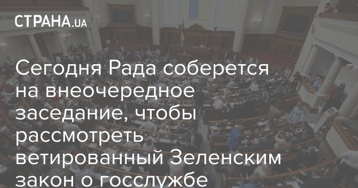 Рада во вторник соберется на внеочередное заседание, чтобы рассмотреть ветированый Зеленским закон о госслужбе. Скриншот: Верховная Рада