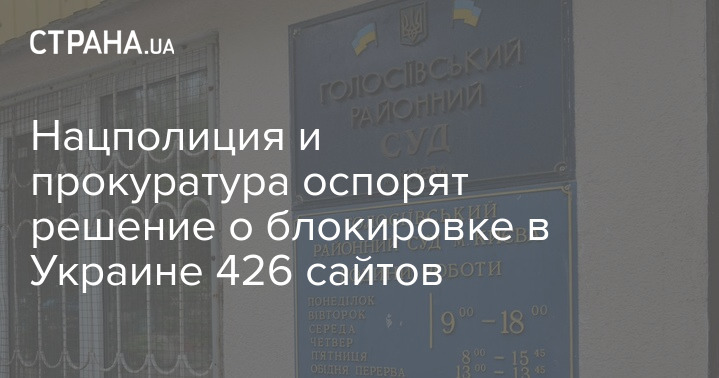 Национальная полиция Украины и прокуратура подадут апелляцию на решение Голосеевского районного суда Киева, которое обязывает операторов сети и интернет-провайдеров заблокировать доступ к 426 сайтам.