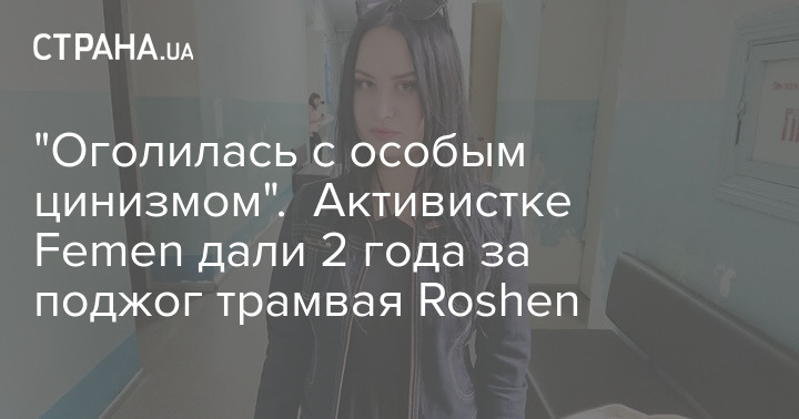 Суд в Виннице приговорил активистку движения Femen Алису "Огонек" Виноградову к двум годам ограничения свободы и штрафу общей суммой в 50 тысяч гривен за поджог трамвая возле фирменного магазина Roshen в 2017 году.
