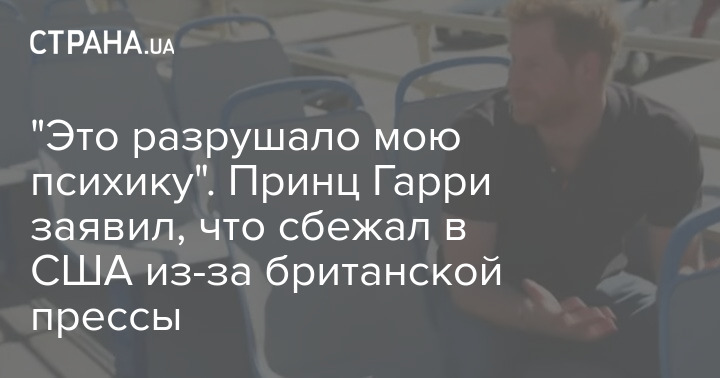 "Это разрушало мою психику". Принц Гарри заявил, что сбежал в США из-за британской прессы