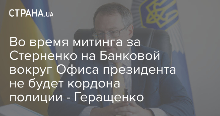 Заместитель главы Министерства внутренних дел Антон Геращенко заявил, что в субботу во время проведения акции в поддержку радикала Сергея Стерненко на Банковой возле Офиса президента не будет кордонов полиции.
