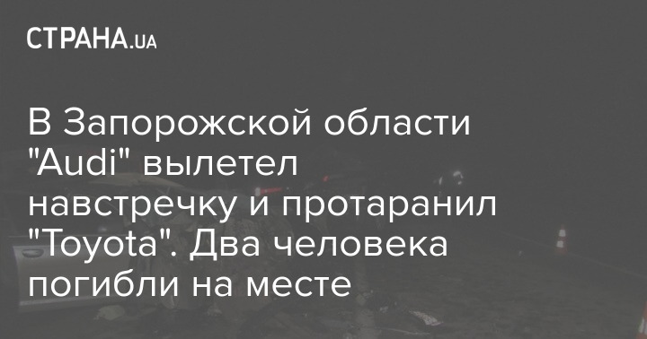 "В результате ДТП водитель и пассажир автомобиля "Audi А6", мужчины 1973 и 1974 годов рождения, жители пгт Акимовка, погибли на месте происшествия. Водитель и пассажир другого автомобиля, жители Мелитополя 1968 и 1966 годов рождения, получили телесные повреждения разной степени тяжести и медиками "скорой" были доставлены в местную больницу", - сообщили в Нацполиции.