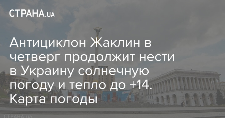 Антициклон Жаклин в четверг продолжит нести в Украину солнечную погоду и тепло до +14. Карта погоды