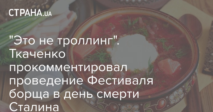 "Это не троллинг". Ткаченко прокомментировал проведение Фестиваля борща в день смерти Сталина. Скринишот: Ткаченко