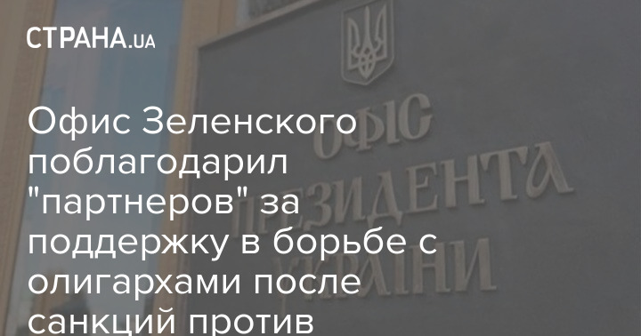 После введения США санкций против бизнесмена Игоря Коломойского Офис президента выразил благодарность каждому партнеру, который поддерживает руководство Украины на пути к "деолигархизации".