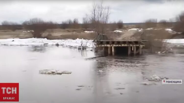 На окраине села Каменно-Случанское в Ровенской области ледяной затор на реке Случь снес деревянный мост. Теперь жителям села придется делать крюк примерно в 30 км, чтобы перебраться на другой берег.