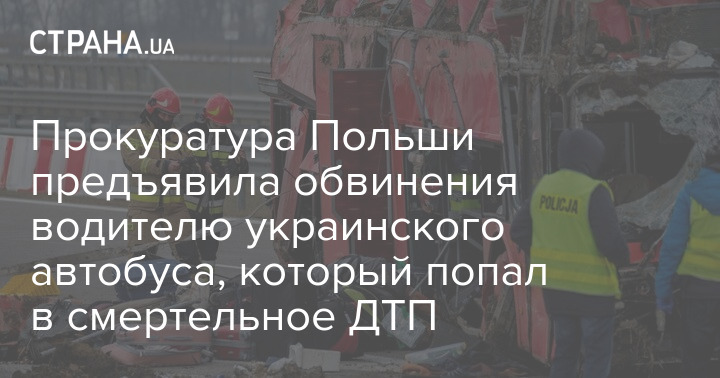 Польская прокуратура предъявила обвинения водителю, который управлял украинским автобусом, попавшим в смертельное ДТП. Ему грозит до 8 лет тюрьмы.