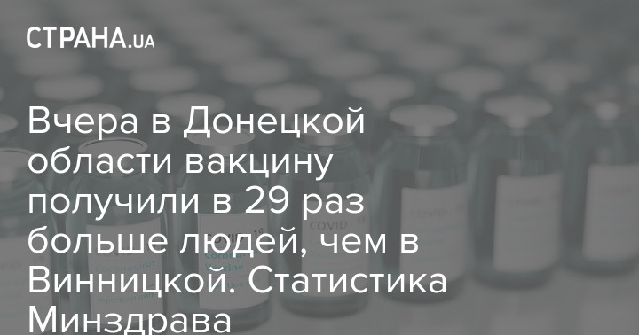Сейчас украинцы получают первую из двух необходимых доз вакцины. По данным Минздрава, за прошлые сутки наибольшее количество привитых зафиксировано в Донецкой области (294). Также в этом регионе было сделано больше всего прививок за весь период кампании(2 474). Меньше всего людей было вакцинировано в Сумской области (350).