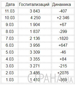 10 марта был антирекорд от начала месяца - 4 250 госпитализаций. В целом за первую декаду марта большая половина дней шла с показателем более трех тысяч попавших в больницу.