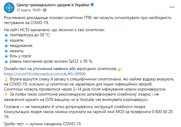 Также предлагается пройти онлайн-тест на уточнение имеющихся или вероятных симптомов по ссылке https://covid19.infermedica.com/uk/#0-99990.