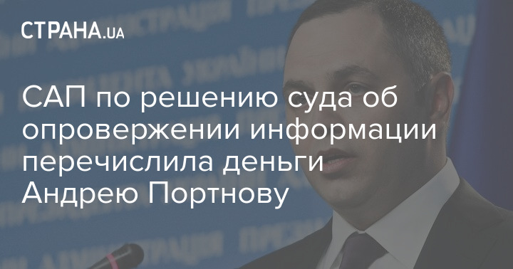 Специализированная антикоррупционная прокуратура (САП) перечислила юристу Андрею Портнову около 2100 гривен по решению суда за опровержение информации о том, что он проходил по делу о незаконном обогащении.