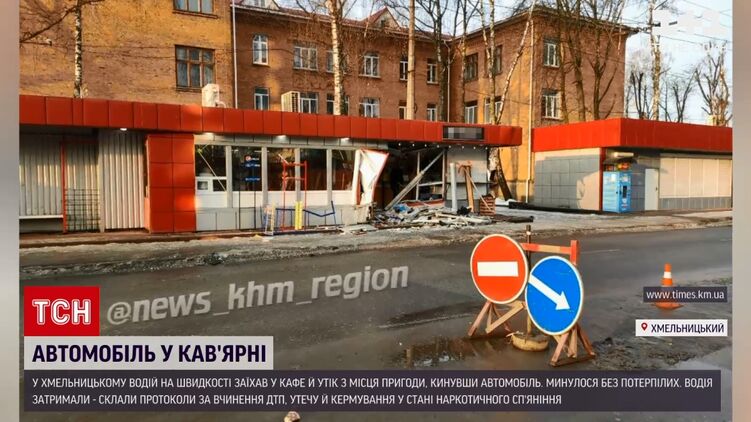 В Хмельницком водитель под наркотическим опьянением на большой скорости въехал в кафе, а затем сбежал с места происшествия.