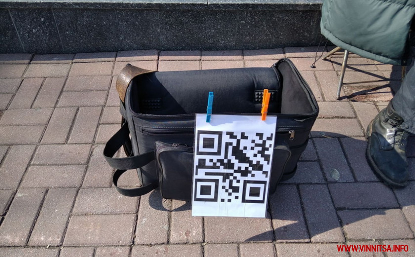 В Виннице уличный музыкант принимает деньги по QR-коду.