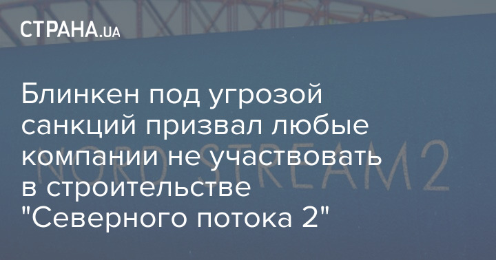 "Госдеп вновь предупреждает, что любая компания, задействованная в (строительстве - Ред.) газопровода "Северной поток 2", рискует попасть под санкции США", - говорится в заявлении госсекретаря США Энтони Блинкена.