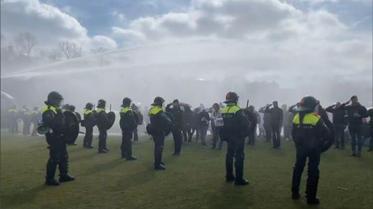 В Амстердаме полиция водометами разгоняла демонстрантов. Фото: twitter.com/HLMcLaughlin1