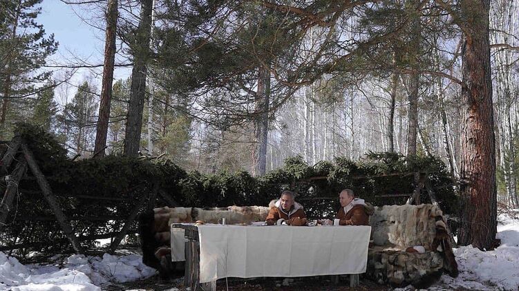 Путин и Шойгу перекусили на фоне лесного пейзажа. Фото: Telegram/РИА Новости