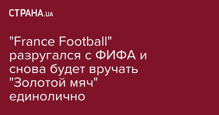 Как уже сообщалось, на прошлой неделе France Football разорвал контракт с ФИФА с вручения "Золотого мяча".