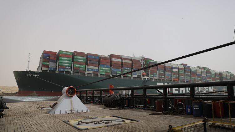 Контейнеровоз сел на мель и заблокировал навигацию. Фото: suezcanal.gov.eg