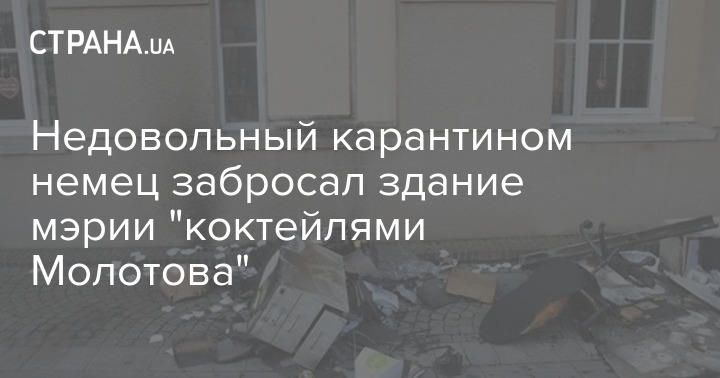Недовольный карантином немец забросал здание мэрии "коктейлями Молотова". Фото: dpa