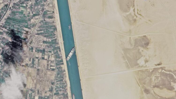 Появилось фото со спутника контейнеровоза, который заблокировал Суэцкий канал