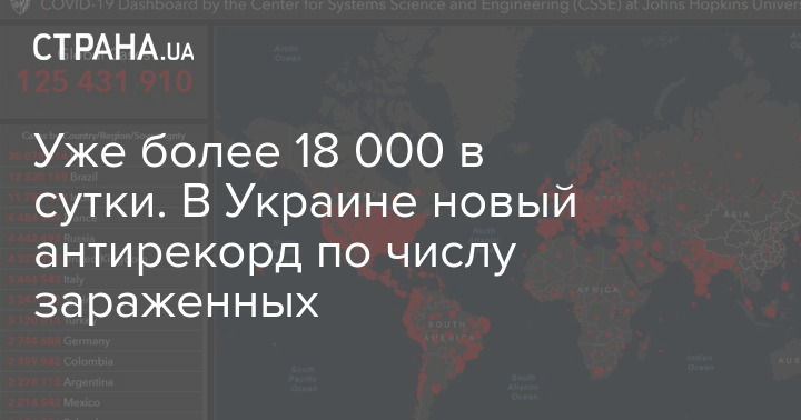 Уже более 18 000 в сутки. В Украине новый антирекорд по числу зараженных