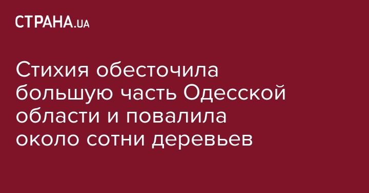 Из-за порывов штормового ветра в Одессе, к 13:00 вторника, 20 сентября, повалены порядка 70 деревьев. В области оказались отрезаны от электроснабжения уже 24 населенных пункта, сообщает УНИАН.