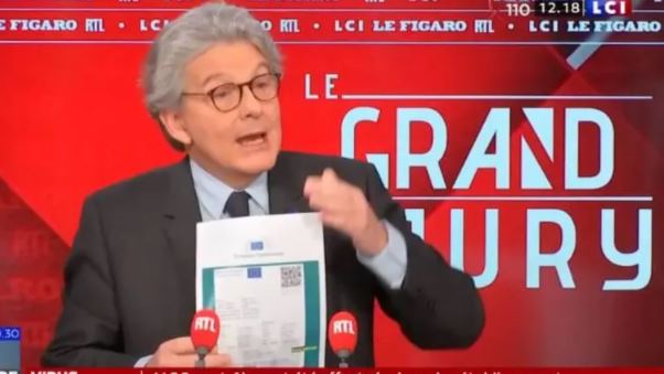 Тьерри Бретон показывает сертификат здоровья