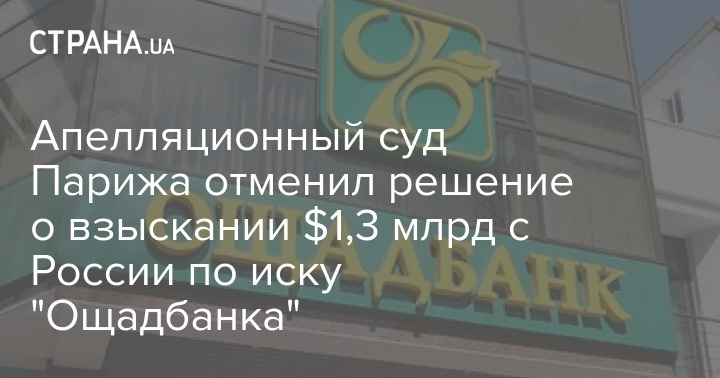 Во вторник, 30 марта, Апелляционный суд Парижа во вторник отменил решение о взыскании с Российской федерации $1,3 млрд по иску "Ощадбанка" из-за активов, которые остались на территории аннексированного Крыма.