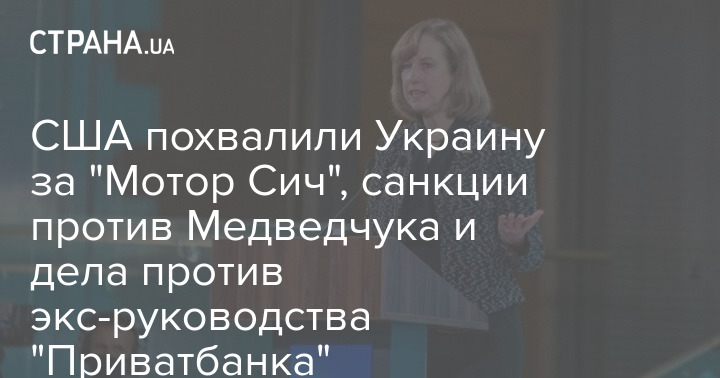 В США считают обнадеживающими шаги Украины по национализации "Мотор Сичи" и привлечению к ответственности представителей бывшего руководства "Приватбанка". Также Вашингтон поддерживает санкции против нардепов от "Оппозиционной платформы - За жизнь" Виктора Медведчука и Тараса Козака.
