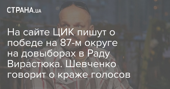 На сайте ЦИК пишут о победе на 87-м округе на довыборах в Раду Вирастюка. Шевченко говорит о краже голосов