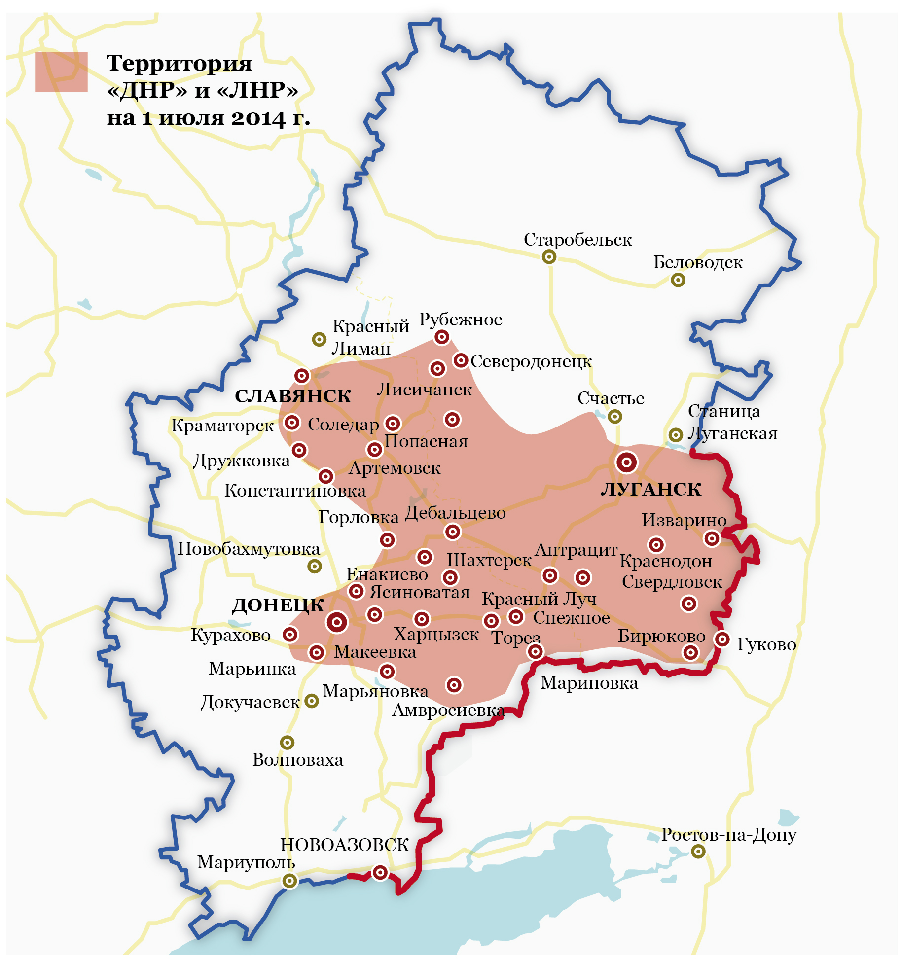 Он был окончательно ликвидирован в начале сентября. И через несколько дней Порошенко подписал первые Минские соглашения. В них были зафиксированы границы "республик" на момент окончания боев. К тому моменту сепаратисты перешли в наступление и захватили территории на юге до Новоазовска.