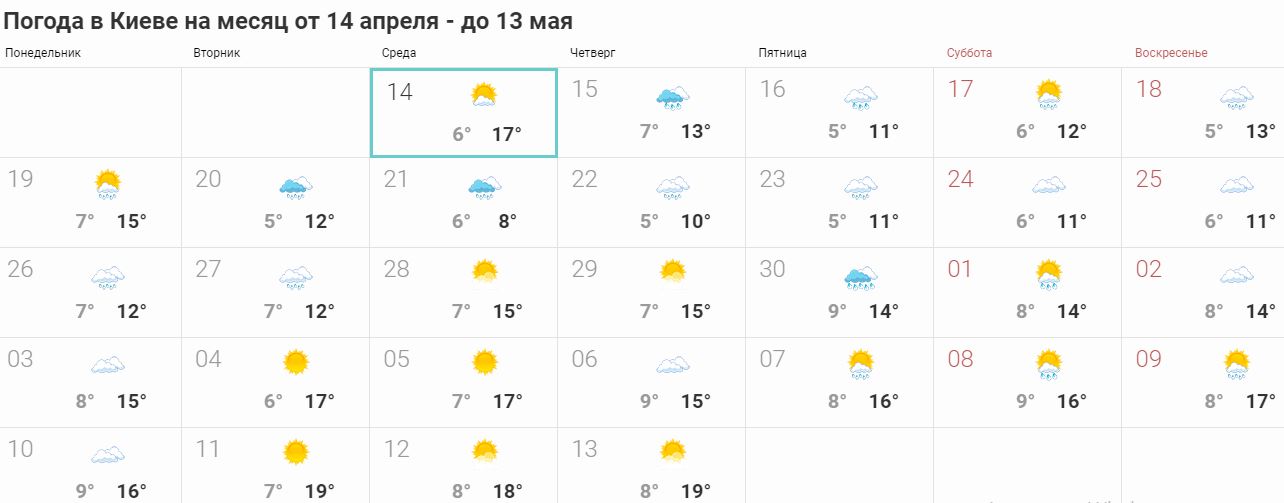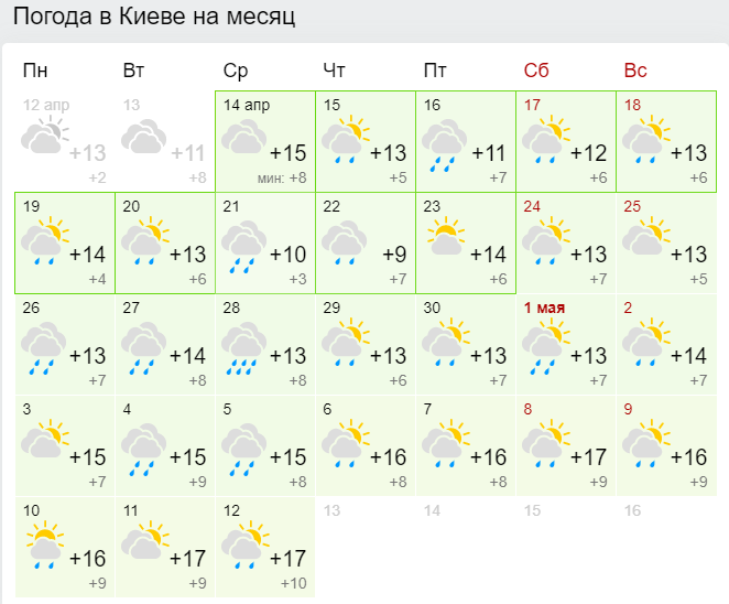 Собрали прогноз погоды в Киеве на ближайшие 30 дней от разных синоптических ресурсов. Рассказываем, какую погоду обещают на майские праздники и Пасху.