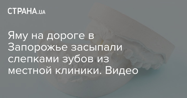 В Запорожье, где две школьницы жестко подрались ради внимания парня, яму на дороге "залатали" с помощью слепков челюстей.