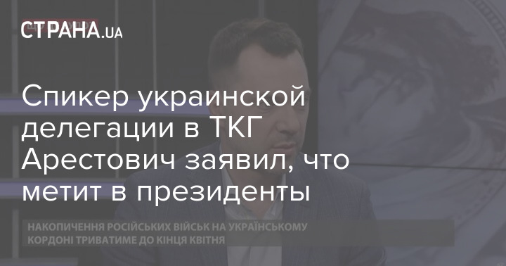 Спикер украинской делегации в Трехсторонней контактной группе (ТКГ) по урегулированию конфликта на Донбассе Алексей Арестович заявил, что в будущем планирует баллотироваться в президенты.