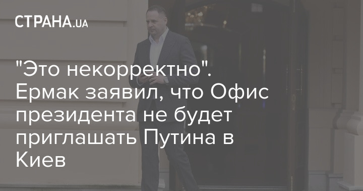 "Нет, я считаю это некорректным", - сказал Ермак, отвечая на вопрос журналиста о том, готовы ли в Офисе президента пригласить Путина в Киев.