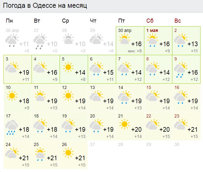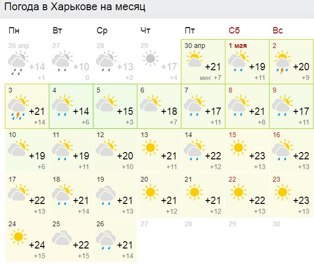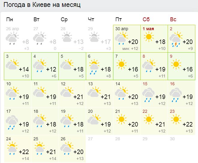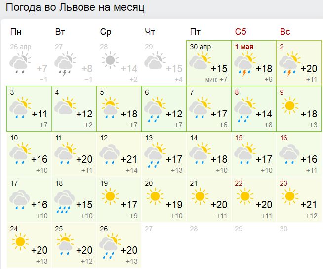 Читайте прогноз погоды на месяц в Киеве, Одессе, Львове и Харькове.